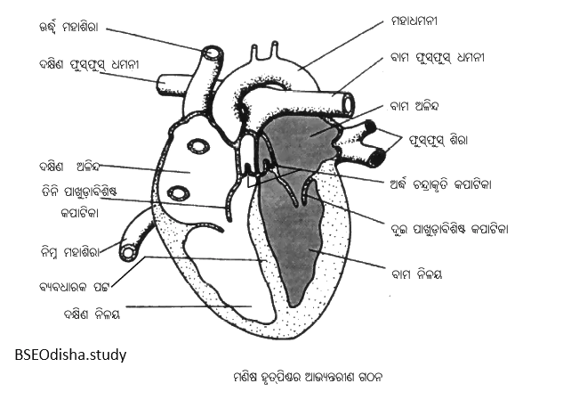 ମଣିଷ ହୃତ୍ପିଣ୍ଡର ଆଭ୍ୟନ୍ତରୀଣ ଗଠନର ନାମାଙ୍କିତ ଚିତ୍ର ଦିଅ ।
