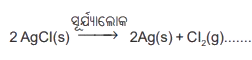 (ii) ସିଲଭର୍ କ୍ଲୋରାଇଡ଼ ସୂର୍ଯ୍ୟାଲୋକ ଉପସ୍ଥିତିରେ ବିଘଟିତ ହୋଇ ସିଲଭର୍ ଓ କ୍ଲୋରିନ୍ ଗ୍ୟାସ୍ ଉତ୍ପନ୍ନ କରେ ।