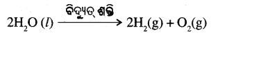 ବିଦ୍ୟୁତ୍ ଶକ୍ତି ପ୍ରୟୋଗଦ୍ଵାରା ଜଳ ବିଘଟିତ ହୋଇ ଉଦ୍ଜାନ ଗ୍ୟାସ୍ ଓ ଅମ୍ଳଜାନ ଗ୍ୟାସ୍ ଉତ୍ପନ୍ନ କରେ ।