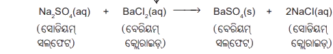 (d) ବେରିୟମ୍ କ୍ଲୋରାଇଡ୍ + ପୋଟାସିୟମ୍ ସଲଫେଟ୍ → ବେରିୟମ ସଲ୍ଫେଟ୍ + ପୋଟାସିୟମ୍ କ୍ଲୋରାଇଡ୍