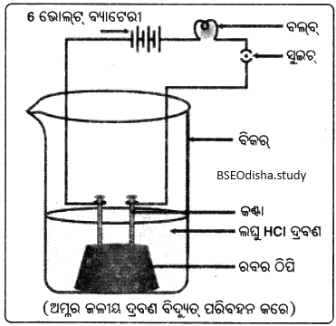 (i) ଅମ୍ଳୀୟ ଦ୍ରବଣ, କ୍ଷାରୀୟ ଦ୍ରବଣ ଲବଣ ମିଶ୍ରିତ ଜଳ ବିଦ୍ୟୁତ୍ ପରିବହନ କରିଥାଏ । ପାତିତ ଜଳ ଅମ୍ଳୀୟ କିମ୍ବା କ୍ଷାରୀୟ ନୁହେଁ କିମ୍ବା ଏଥିରେ କୌଣସି ଲବଣ ମିଶି ନ ଥାଏ । ଏହା ନିଜେ ବିଶ୍ଳେଷିତ ହୋଇପାରେ ନାହିଁ କିମ୍ବା ଏଥିରେ କୌଣସି ଲବଣର ଆୟନ ନ ଥିବାରୁ ଏହା ବିଦ୍ୟୁତ ପରିବହନ କରିପାରେ ନାହିଁ ।