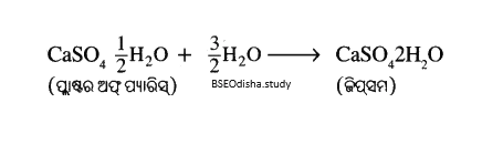 (i) ପ୍ଲାଷ୍ଟର ଅଫ୍ ପ୍ୟାରିସ (CaSO412H2O) ଜଳ ସଂସ୍ପର୍ଶରେ ଆସିଲେ ଜିପସମ୍ରେ (CaSO4 2H2O) ପରିବର୍ତ୍ତିତ ହୋଇ କଠିନ ହୋଇଯାଏ ।