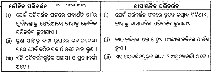 (କ) ଭୌତିକ ପରିବର୍ତ୍ତନ ଓ ରାସାୟନିକ ପରିବର୍ତ୍ତନ