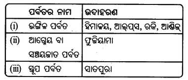 (ଙ). ଉଦାହରଣ ସହ ବିଭିନ୍ନ ପ୍ରକାର ପର୍ବତର ନାମ ଲେଖ ।