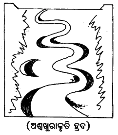 (ଜ). ଅଶ୍ଵଖୁରାକୃତି ହ୍ରଦ କିପରି ସୃଷ୍ଟି ହୁଏ ?