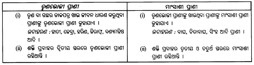 (ଘ). ତୃଣଭୋଜୀ ପ୍ରାଣୀ ଓ ମାଂସାଶୀ ପ୍ରାଣୀ