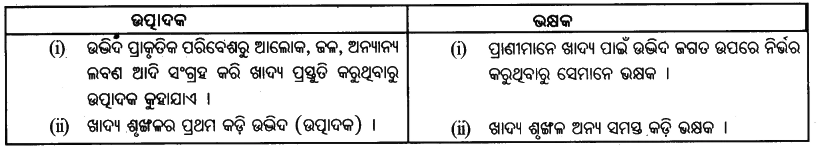 - ଉଦ୍ଭଦ ଜଗତ ଉତ୍ପାଦକ ଓ ପ୍ରାଣୀମାନେ ଭକ୍ଷକ ଅଟନ୍ତି ।