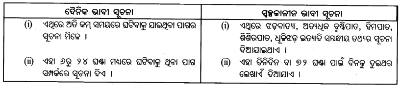 (ଖ). ଦୈନିକ ଭାବୀ ସୂଚନା ଓ ସ୍ଵଳ୍ପକାଳୀନ ଭାବୀ ସୂଚନା