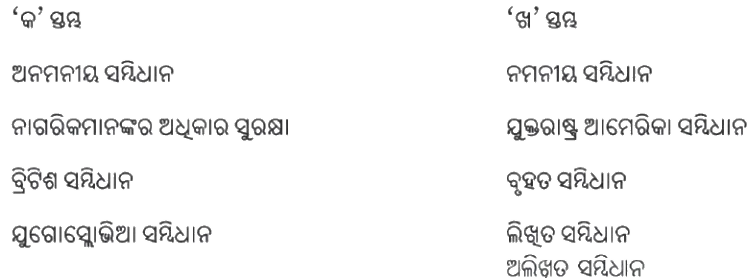 (ଖ) ସମ୍ବିଧାନର ପ୍ରକାରଭେଦ ଲେଖ ।