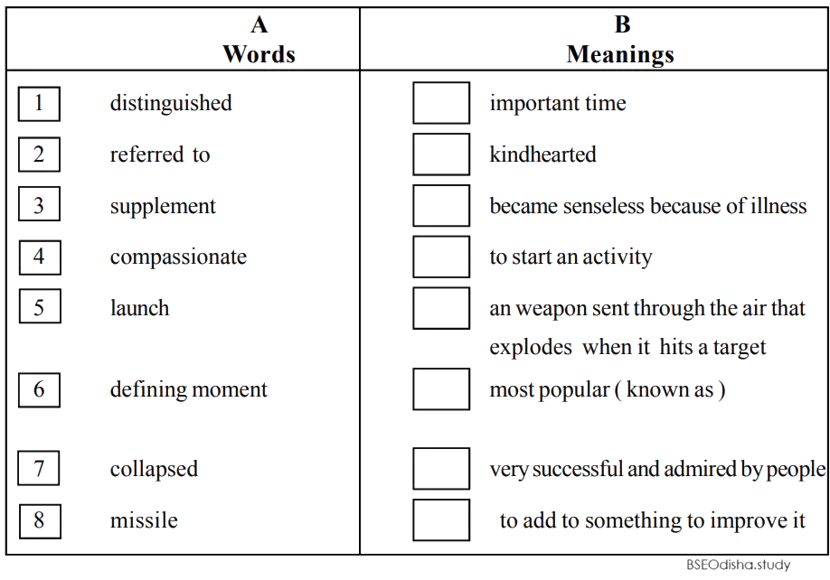 ( ନିମ୍ନରେ ପାଠ୍ୟବିଷୟର କେତେକ ପ୍ରଧାନ ଘଟଣା ଦିଆଯାଇଛି । ସେଗୁଡ଼ିକ କ୍ରମରେ ନାହାନ୍ତି । ସେଗୁଡ଼ିକୁ କ୍ରମାନୁସାରେ ସଜାଅ ଓ ପ୍ରତ୍ୟେକଟି ପାଇଁ ବାକ୍ସ ମଧ୍ୟରେ କ୍ରମସଂଖ୍ୟା ଲେଖ । ବାକ୍ୟଗୁଡ଼ିକୁ ଲେଖ ।)